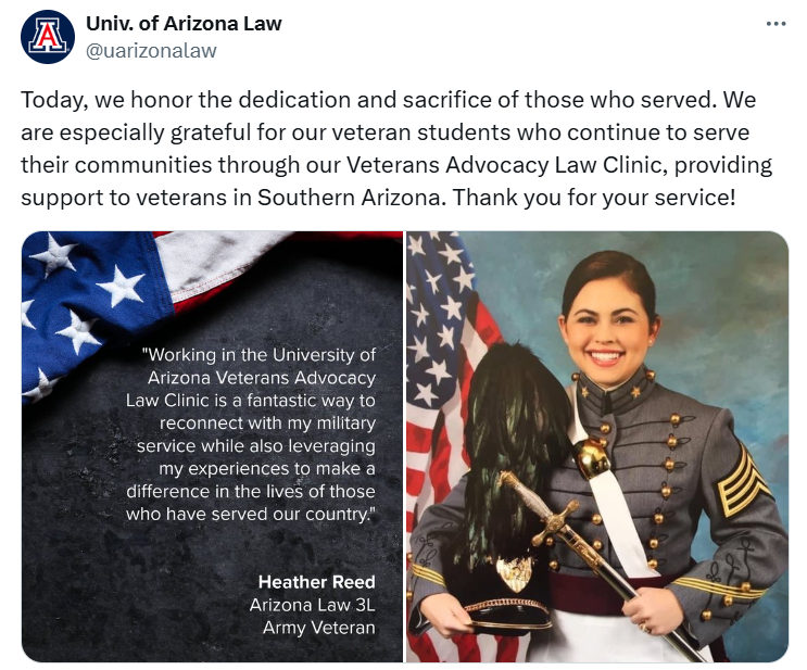 In honor of the Veterans Day holiday this week, we recognize the veterans in our community, including current student Caleb Hayter. We also feature the work of the Veterans Law Advocacy Clinic. Now and throughout the year, thanks to all who have served.
